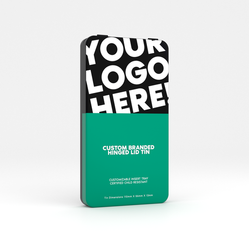 CR pre-roll tin featuring a hinged lid that locks into child-resistant grooves within the inner bottom lip. Customized sizing and branding ar...